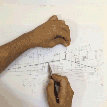 建筑绘画的两点透视要比三点透视还要难以掌控,Anatoly Reza Pahlevi 为我们展示了他的独门绝技,一学即会,而且每一笔都完美无瑕,堪称学生们的“作弊”神奇啊!