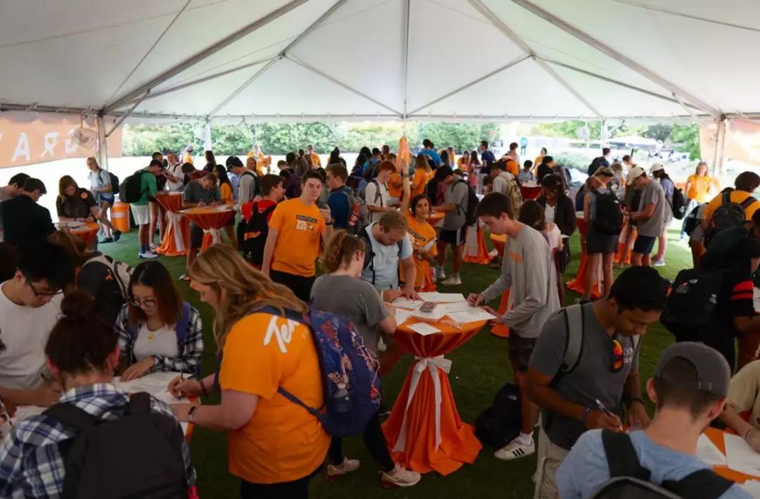 美国的大学都有自己的代表色,在大学色彩日这天,人们会穿上同样的颜色庆祝。小男孩最喜爱的大学代表色是橘色。